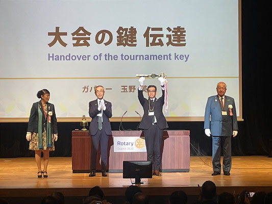 大会2日目は、記念講演として、七尾RCより神野様が 能登での震災時にRCの繋がりがとても強く感じられたことや、アメリカグレンデールRCから中曽根様が、R財団国際親善奨学生としてRCとの縁を持ち、その経験が人生を大きく変えたことで、RCへ入会し、幅広く奉仕活動を行ってロータリーへ御返し、そして恩を送ることをお話しくださいました。次年度は、大垣での開催。今年の演出を越えられるかプレッシャーがかかりますね。