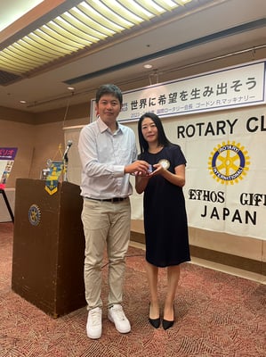 臼井:堀越さんとは4年前にお店で初めて会いました。その後、定期的に連絡をいただいておりまして、コロナ禍でなかなかお店に伺えなかったが、久ぶりにお店にいったら覚えてくれてまして、ロータリーに興味を持っていただき、是非入りたいと言ってくれました。